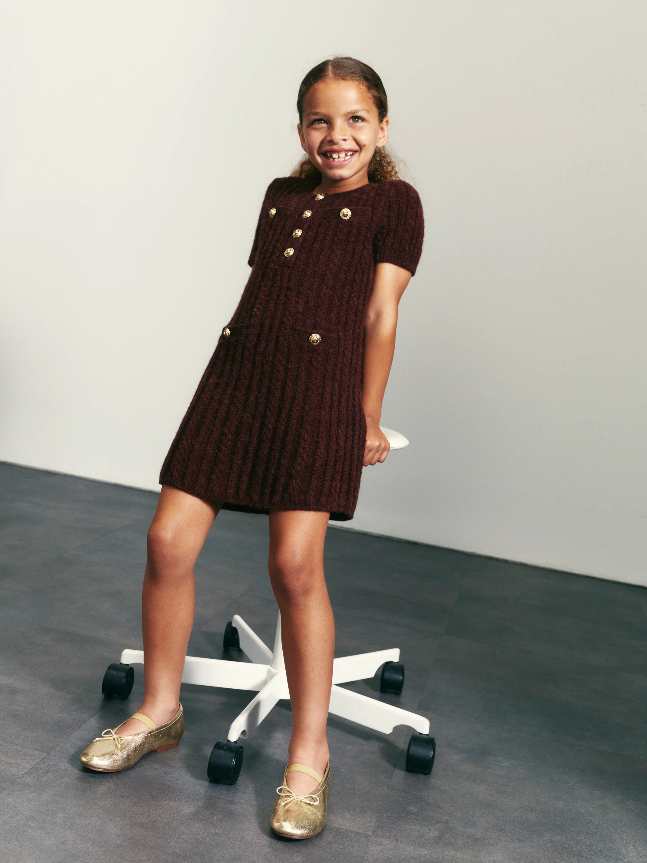 Keep your little ones looking cosy and feeling stylish in this brown alpaca knit dress. Decorated with gold buttons and a flared hem, pair with tights and ankle boots for a chic play date.