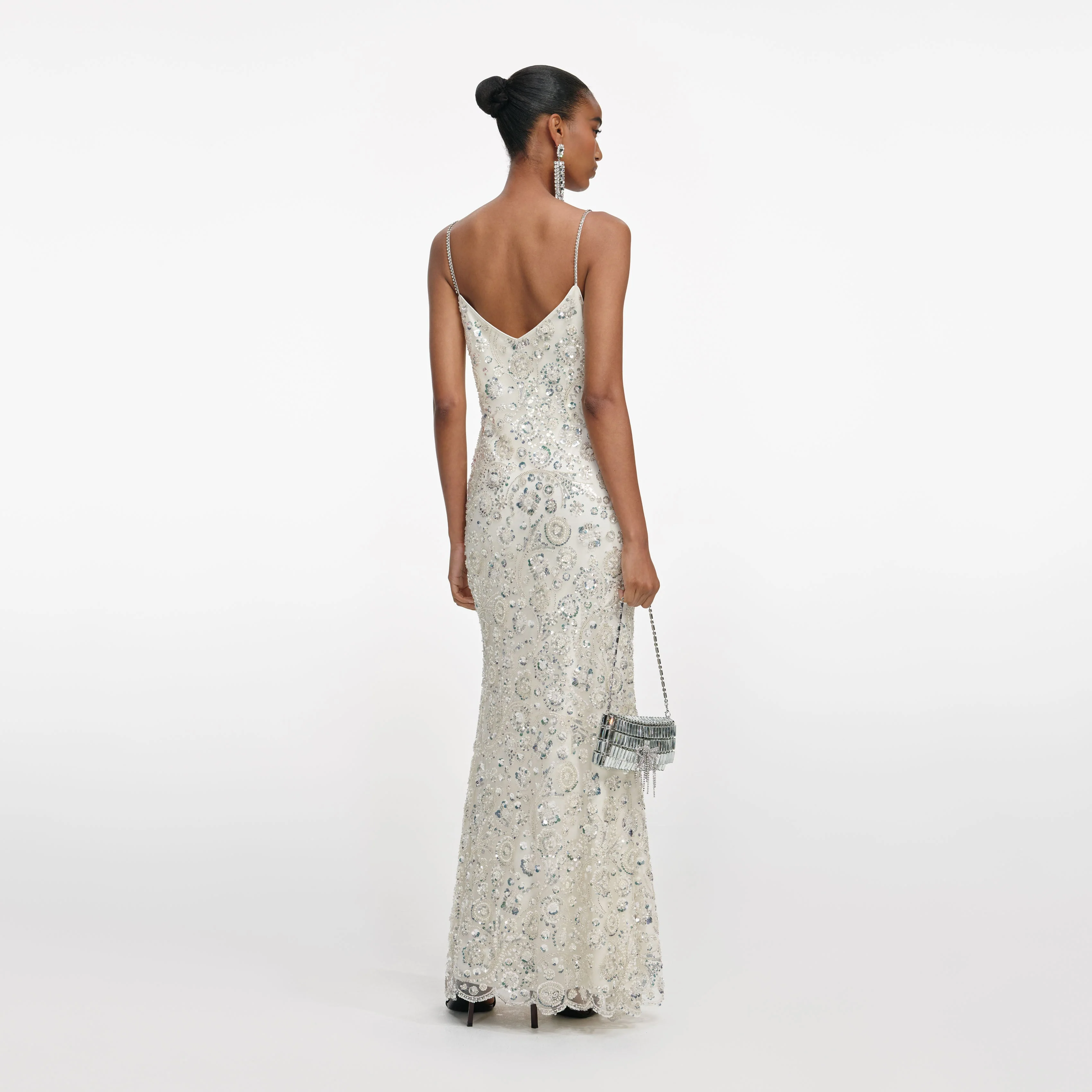 Cream Floral Sequin Maxi Dress