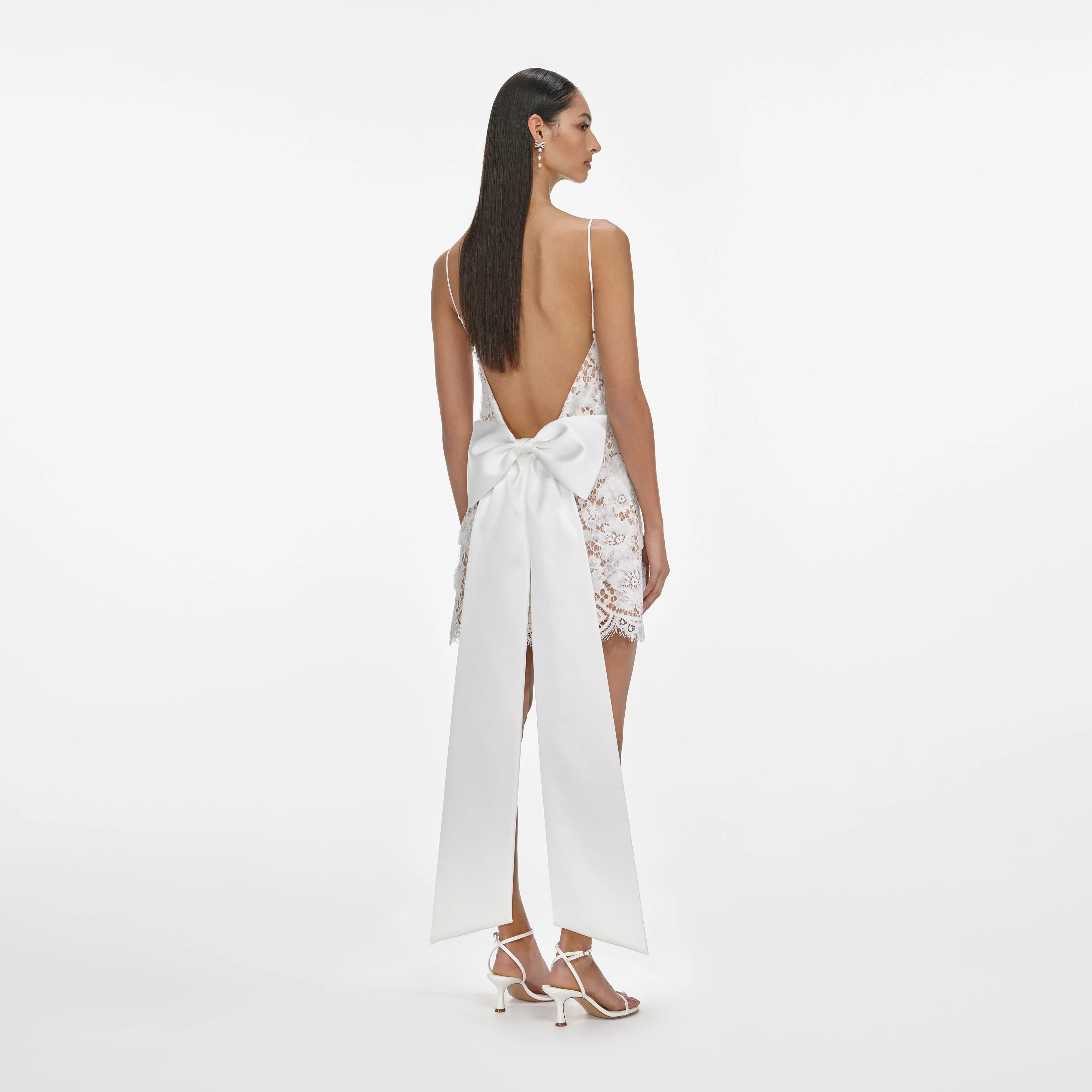White Lace Satin Bow Mini Dress