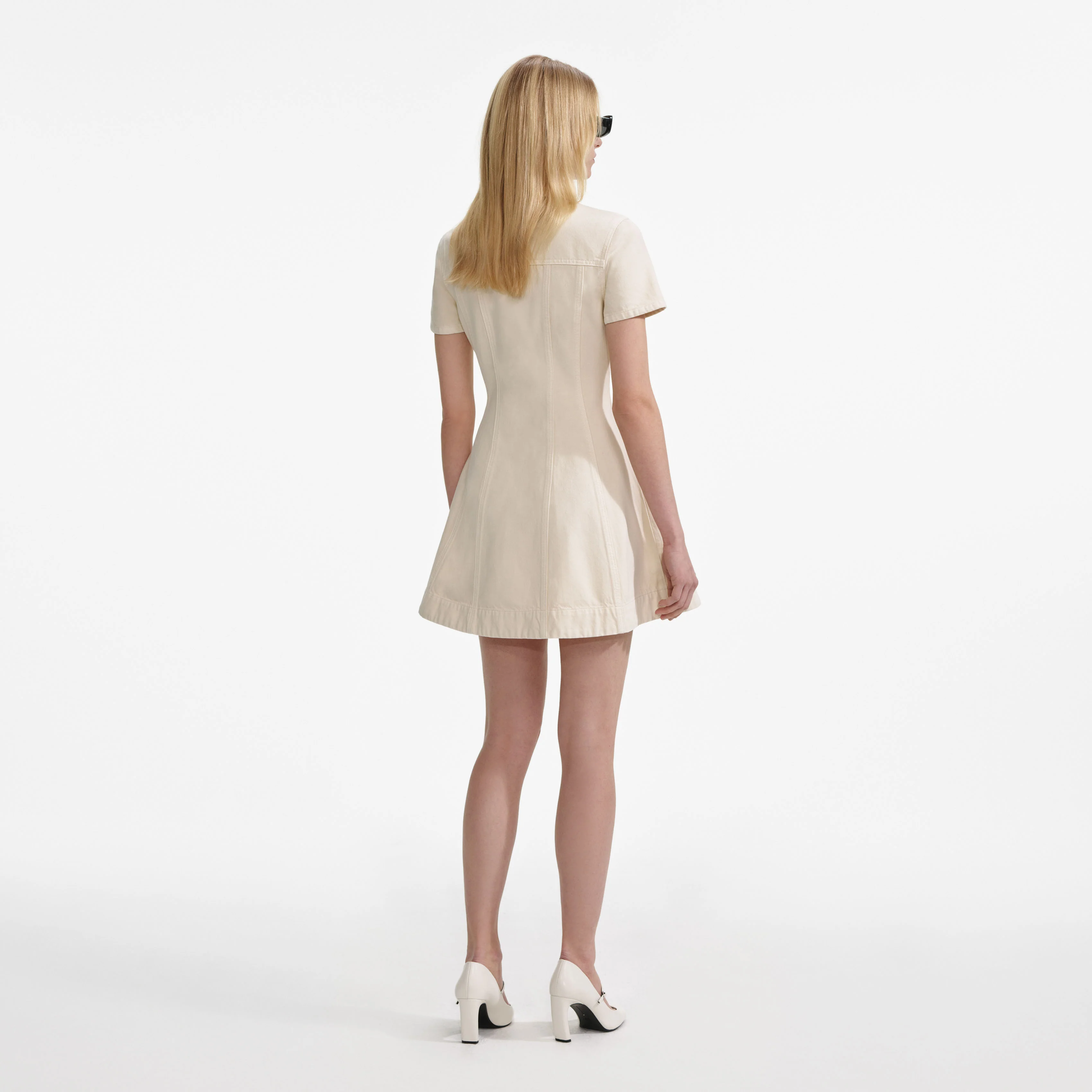 Cream Collared Denim Mini Dress