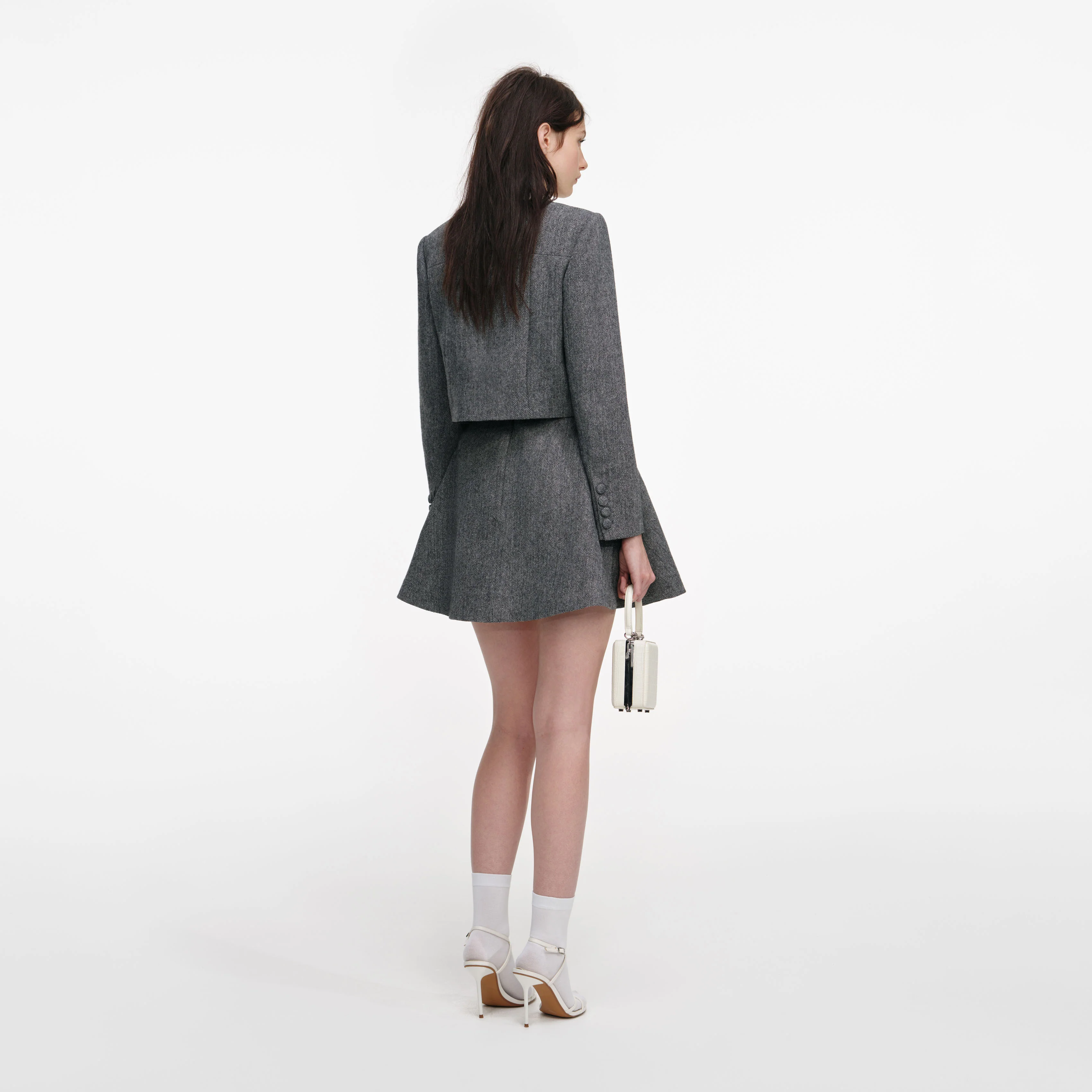 Styled with flair, this herringbone wool jacket comes with its own scarf detail around the neckline. A contrast collar adds preppy detail – pair with our matching skirt for meetings that matter.